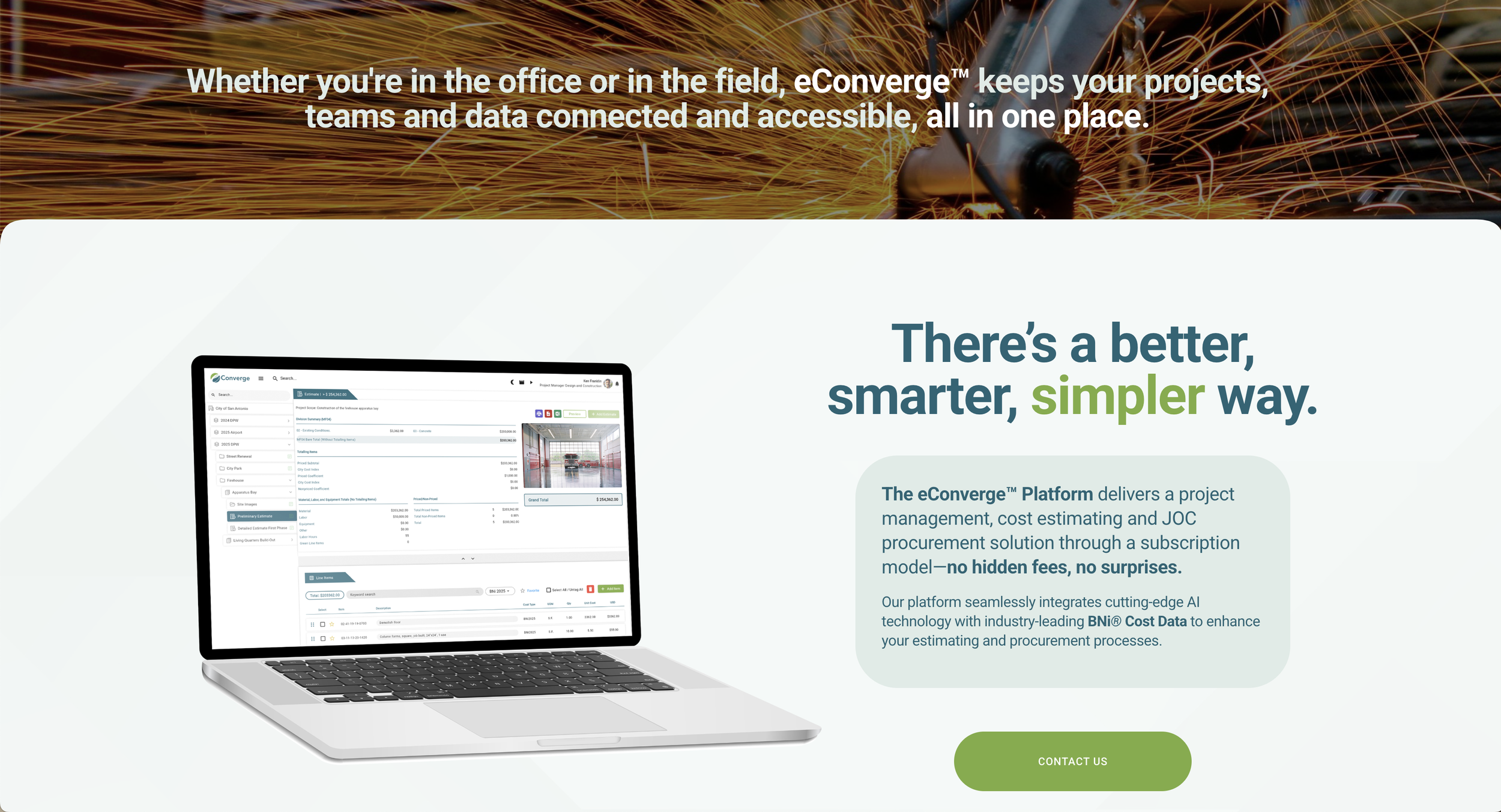 eConverge™ revolutionizes JOC construction procurement through their platform. While they had established their core product and logo, they needed our expertise to develop a cohesive digital presence. Our team was tasked with refining their brand identity, creating an intuitive website architecture, and launching a targeted digital marketing campaign to position them as industry innovators in the construction technology space.